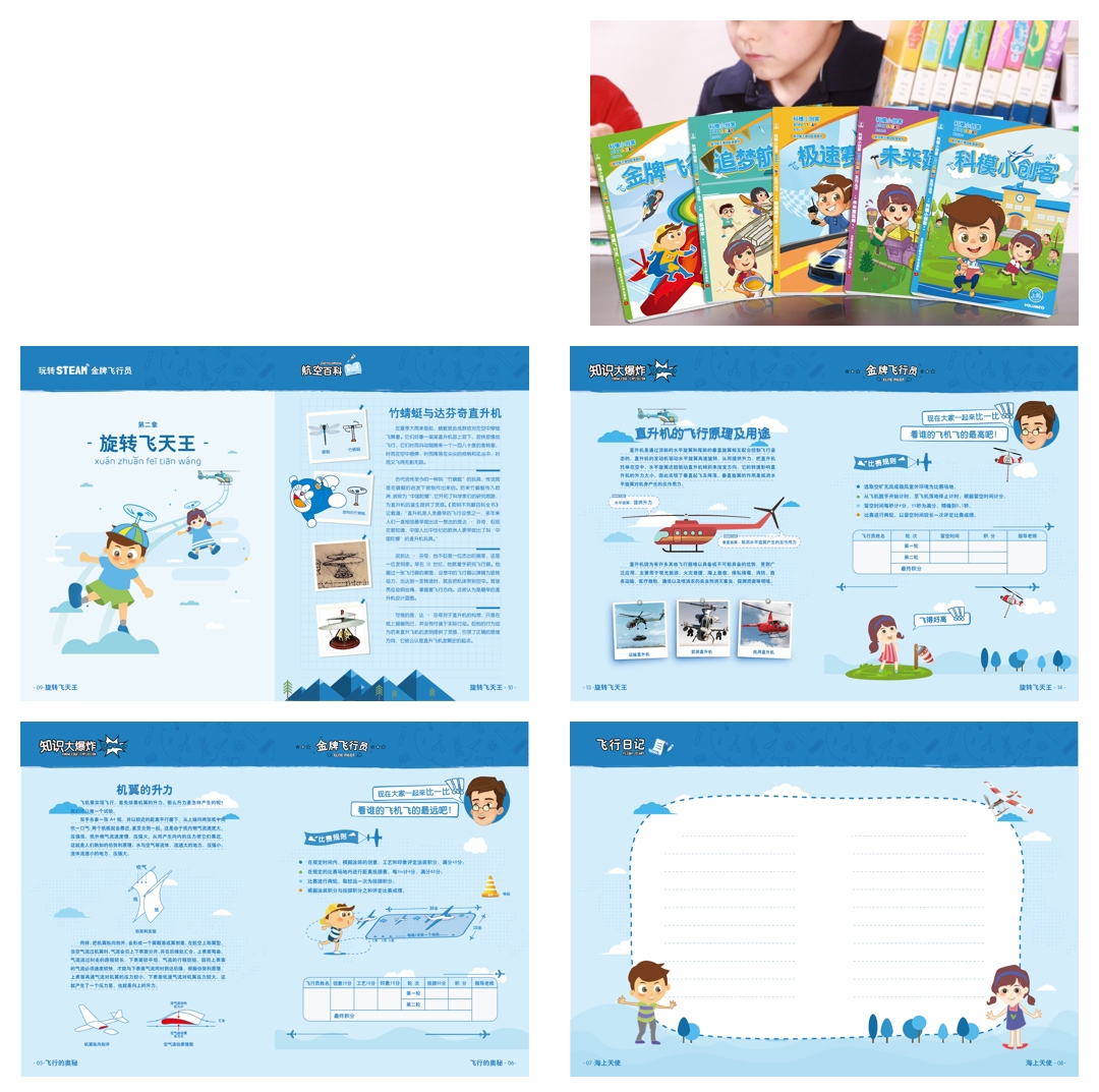 提供《模型總動員》、《金牌飛行員》等5大系列教材,每系列分上下兩冊。內容涵蓋綜合、航空航天、航海、車輛和建筑相關知識。每冊教材含14-20章節,每一章節分科普故事、模型制作、原理闡述、競賽規則、課后感想5大內容。設計風格圖文并茂,知識結合教學大綱。北航出版社發行,帶國家統一書號。